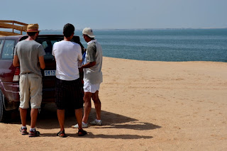 Després vam parar a un petit penyasegat, i allí hi havia el Juan Carlos pescant solitària i tranquilament. Era un espanyol amb negocis de pesca a la ciutat i que hi fa visites freqüents. Vam estar parlant amb ell, i com es coneixia mitja costa d'Àfrica de dalt a baix, vam pendre nota de moltes indicacions que ens va donar.